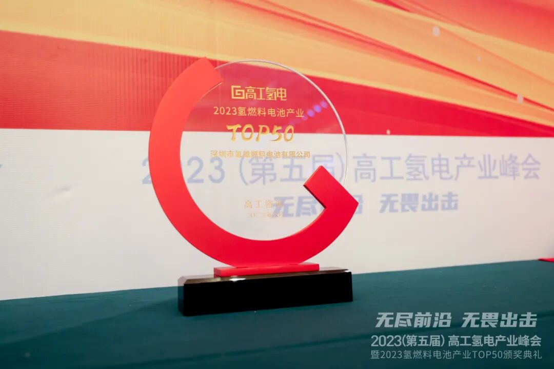 在颁奖典礼环节,雄韬氢雄作为行业代表性力量,荣获“2023 氢燃料电池产业 TOP50 ”奖项。